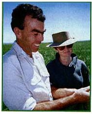 Geoff and Sharon, "here for the long-haul" Ask Geoff and Sharon Brown at 'Goodgerwirri;, an 800ha barley and sunflower property at Spring Ridge on the Breeza Plain, about their farming priorities. You might expect to hear phrases like 'better yields', 'higher protein and oil content' etc. But more likely you'll hear words like 'sustainable', 'zero-till' and 'conservation'. No tree-hugging dreamers, they've been working the property for 20 years but, in common with an increasing number of practical farmers, are anxious to adopt practice is which will preserve their major asset, the soil. That's why they decided to use Beaulieu R.U.M. Liquid Plant Food this season on 70ha of barley sown straight after a '20-bag' crop of wheat. They planted with 40units/ha of urea and followed up 6 weeks later with 3 litres R.U.M./ha as a foliar dressing. Over half the 800ha property is typical Breeza self-mulching, black soil and Geoff remembers the days when cultivators threw up earthworms 20cm long. Now, by adopting zero-till methods and using earthworm-derived R.U.M. liquid, he hopes to restore earthworm and microbial activity to the soil. "Sharon and I are here for the long haul", said Geoff. "And if we expect the soil to look after us then we will need to look after it."