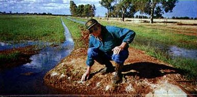Increasing salinity in Australia's rice bowl, the Murrumbidgee Irrigation Area, is becoming a major problem for some producers. However, Paul Brown, 'Gordonvale', Griffith, has enlisted R.U.M. in the fight against the salty enemy. With a salinity problem in several bays of rice, Paul used R.U.M. as a wetting agent to help his knockdown herbicide... then sprayed a 1-in-10 solution of R.U.M. and water onto his seed which he direct-drilled instead of aerial sowing. "My agronomist said the results were surprisingly good for salt-affected ground", Paul said. "But when I found out that I had an infestation of 'dirty Dora' weed, I decided to hit it with a selective herbicide... not a good idea as it turned out 'cos the emerging went crop went white... and so did I! Faced with losing the rice, Paul figured that R.U.M. might help, so, utlising the natural turbulence of his irrigation flow, he applied 5L/ha to each of the rice bays. In a week, seeding vigour had returned to the affected plants. Re-sowing has been averted and the 'dirty Dora' hasn't raised its head since... thus avoiding a further round of herbicide spraying. Good move, Paul!